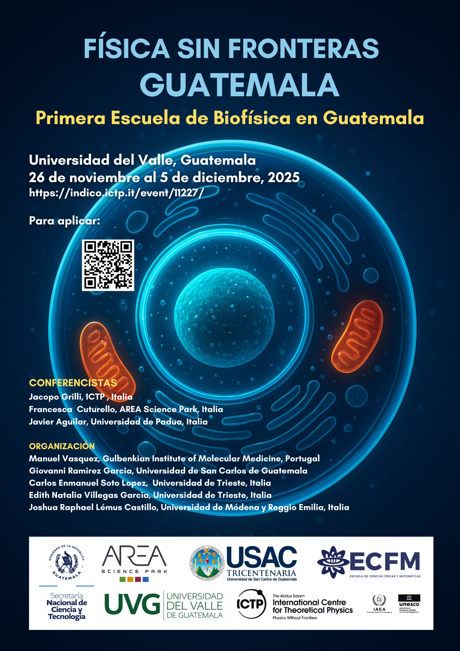 Con los años, esperamos crear una comunidad académica referente en Guatemala que inspire, conecte y forme a la próxima generación de científicos en biofísica y ciencias de la vida cuantitativas, fomentando redes de colaboración entre universidades, instituciones nacionales e internacionales, y contribuyendo a que Guatemala se posicione como un actor clave en la investigación científica interdisciplinaria.